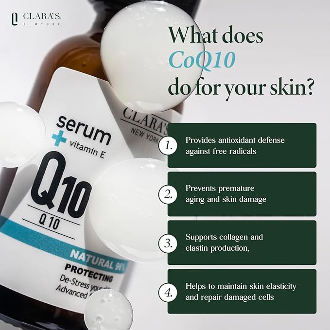 CLARA'S NEW YORK Q10 Facial Serum with Vitamin E – Hydrating, Brightening & Skin-Supportive – 30ml / 1 Fl Oz – Made in USA